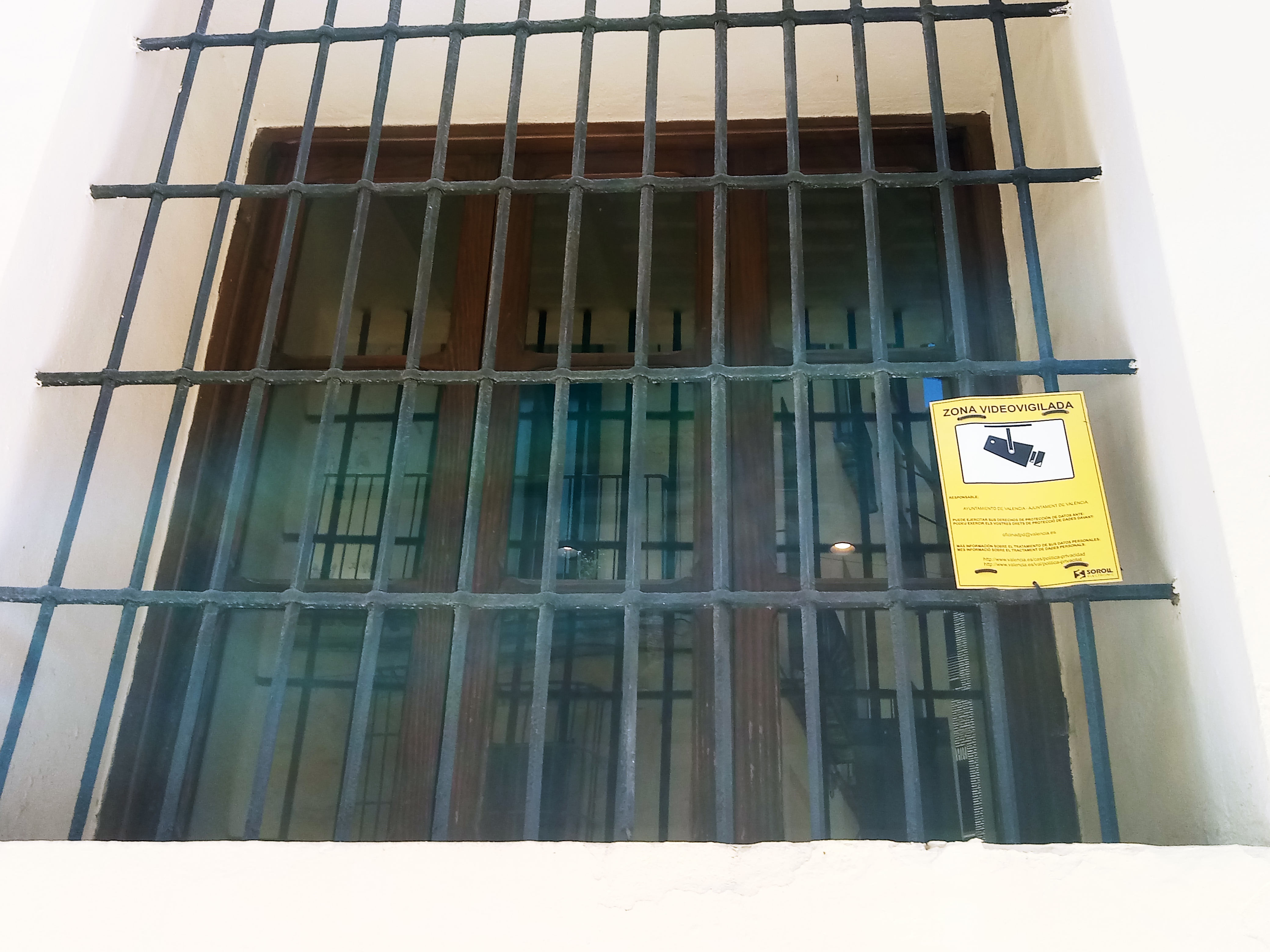 También quisieron colar como excusa válida una “Guía sobre el uso de videocámaras para seguridad y otras finalidades”, señalada como “normativa”. Sin embargo, hubo que recordar que esta guía/normativa no es ninguna LEY que esté por encima de Ley de Patrimonio Cultural Valenciano 4/1998 y posteriores modificaciones, de rango claramente superior, o del propio PEP de Ciutat Vella (2020). Por ende, no puede “obligar” a nada que contravenga lo marcado por la legislación en materia de patrimonio cultural. Además, se entiende perfectamente que esa exhibición de los carteles en lugar visible, y como mínimo, en los accesos a las zonas vigiladas ya sean interiores o exteriores, es sólo aplicable a edificios que no gocen de protección patrimonial. En ningún caso a un monumento, a un BIC y mucho menos a un edificio Patrimonio de la Humanidad UNESCO.